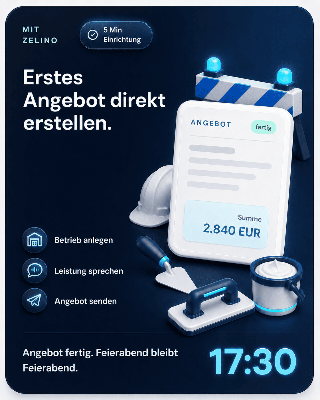 Früher: 22:00 am Küchentisch. Jetzt: 5 Minuten einrichten, Angebot erstellen, 17:30 Feierabend.